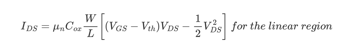 transconductance, $g_m$은 MOSFET이 주어진 $V_{DS}$에서 $V_{GS}$를 $I_{DS}$로 얼만큼 변환할 수 있는지에 대한 평가지표(Figure-Of-Merit)이다. $I_{DS}$의 수식으로 부터 $g_m$을 아래와 같이 유도할 수도 있다.